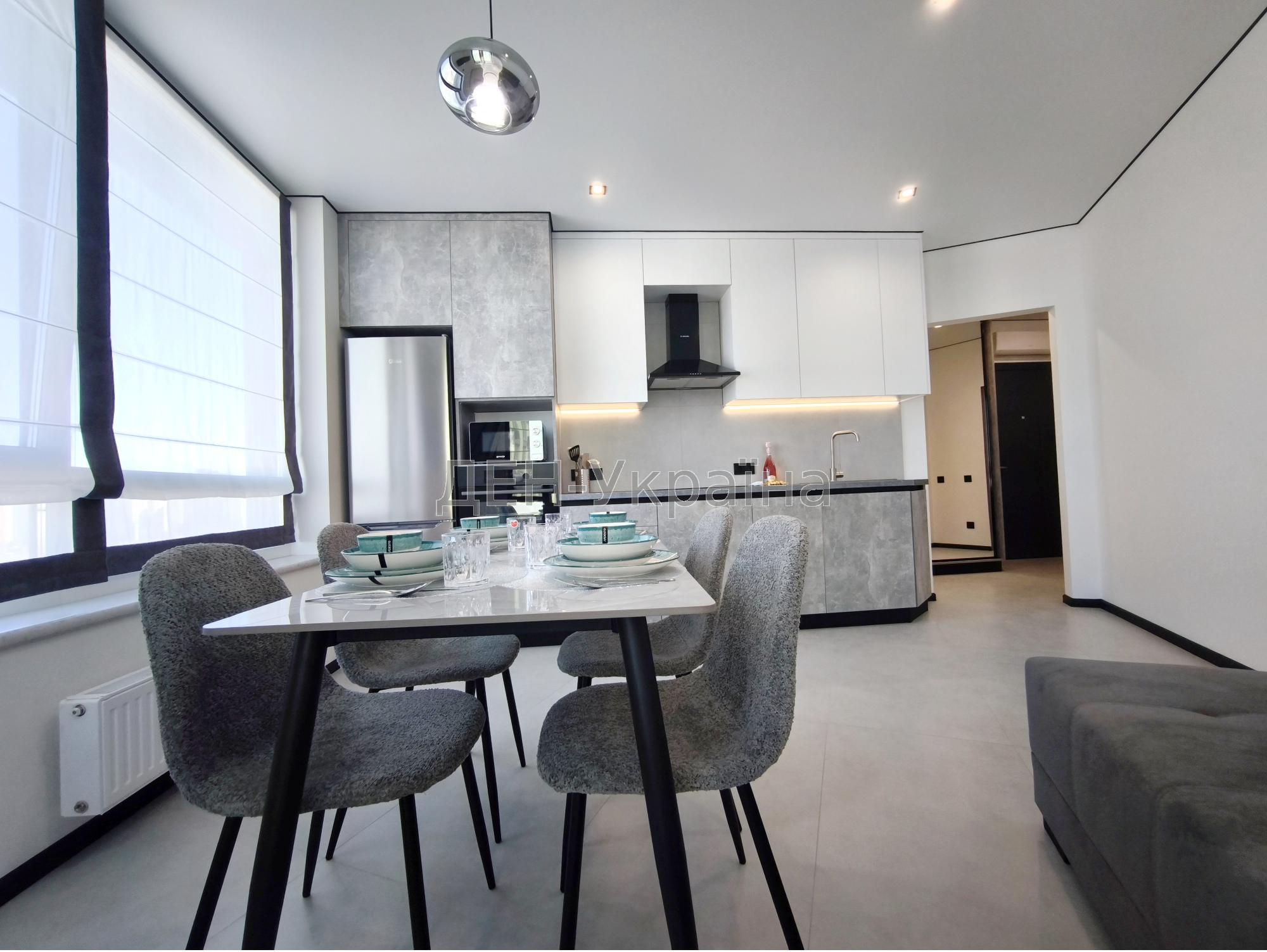 У квартирі виконано якісний євроремонт у авторському стилі. Повна комплектація сучасною, брендової побутовою технікою (посудомийна машина, індукційна варильна поверхня з витяжкою (а також новий необхідний комплект посуду), духовка, мікрохвильова піч, холодильник, пральна машина з сушильною опцією, бойлер, кондиціонер, реле напряжения ZUBR квартиру, телевізор смарт, інтернет оптволокно, система очищення води на квартиру) та всіма необхідними сучасними меблями.