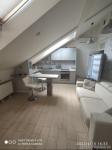 Квартира расположена на мансардном этаже и это позволяет получить все приемущества этой опции. В квартире много окон на первом этаже это наполняет квартиру солнечным светом а на втором этаже позволяет любоваться звездным небом.