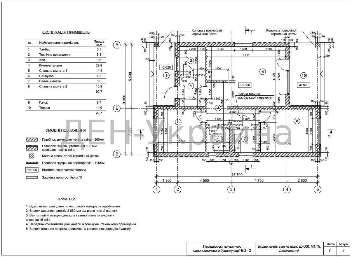 Монолітний фундамент, стіни газоблок з утепленням, покрівля металочерепиця, штукатурка, стяжка.